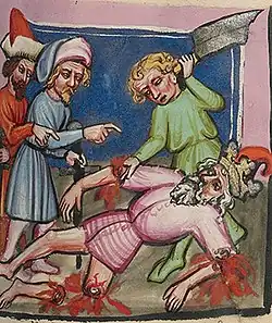 „Adoni-Besek floh, aber sie verfolgten ihn, ergriffen ihn und hackten ihm die Daumen und die großen Zehen ab. Da sagte Adoni-Besek: „Siebzig Könige mit abgehackten Daumen und abgehackten großen Zehen haben unter meinem Tisch die Reste aufgelesen. Wie ich gehandelt habe, so hat mir Gott vergolten.“ Man brachte ihn nach Jerusalem und dort starb er.“