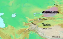 Einige Jahrhunderte später, ca. 3000–2500 v. Chr., breiteten sich charakteristische Afanassjewo-Fundplätze nach Süden durch die Region Xinjiang bis ins Tarimbecken, aber auch westlich davon, nach Tadschikistan und in die Region um Buchara aus. Westlich des Pamir und nördlich des Tienschan endeten die Afanassjewo-Funde Ende 3.–2. Jahrtausend v. Chr. Vermutlich wurden die Afanassjewo-Leute von der sich ausbreitenden Andronowo-Kultur allmählich kulturell und womöglich auch sprachlich assimiliert. Im Nordosten dagegen formten sie durch Einflüsse aus anderen Nachbarkulturen die Okunew-Kultur. Demgegenüber lassen sich im Tarim-Becken noch sehr lange archäologisch-kulturelle Kontinuitäten bis in die Tarim-Kultur im 1. Jahrtausend v. Chr. beobachten. Die erforschten archäologischen Übereinstimmungen sind besonders zahlreich und erstrecken sich von Lebensstil und Ernährung, typischen Kurganen, Metallurgie und Keramik bis hin zu Textilien und Holzbearbeitungen, weil das trockene Wüstenklima der Taklamakan, wie auch der Permafrostboden im Norden auch organische Funde konserviert.