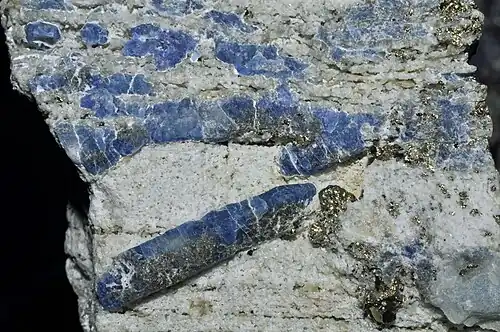 Weitere Fundorte sind unter anderem der Monte Somma, Pitigliano sowie mehrere Fundpunkte in den Provinzen Rom und Viterbo in Italien; Kimmirut in Kanada; das Malaya-Bystraya-Flusstal im Rajon Sljudjanka nahe dem Baikalsee in Russland; die Lasuritlagerstätte am Fluss Lyadzhvardara im Pamirgebirge in Tadschikistan und die „Edwards Mine“ bei „Edwards“ im St. Lawrence County (New York) in den USA.[14]