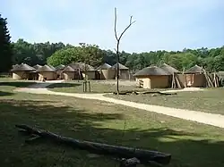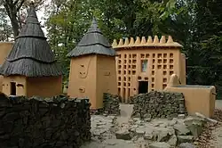 In einer Wasserfläche wurden außerdem zwei Pfahlbauten errichtet, wie sie von der Bevölkerungsgruppe der Toffinu in Ganvié, einem Dorf an der Südküste von Benin, gebaut werden. Das Material für diese Bauten stammt aus Benin. Eines der Gebäude beherbergt ein Informationszentrum, das andere wurde so authentisch wie möglich als Wohnung einer Toffinu-Familie nachgebildet.[13]