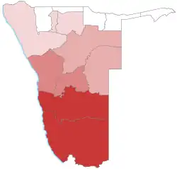 Afrikaans wird hauptsächlich in Südafrika (17,54 Millionen Sprecher) und Namibia (220.000) gesprochen, außerdem in anderen Staaten des südlichen Afrikas, darunter Sambia (96.000), Eswatini (17.000) und Botswana (8000).[1] Afrikaans ist ebenfalls in klassischen Einwanderstaaten örtlich anzutreffen: In Australien leben nahezu 44.000 Sprecher, in Kanada 10.300, in den Niederlanden 14.300 (jeweils Stand 2016), in Neuseeland 27.400 (Stand 2013), im Vereinigten Königreich 11.200 (Stand 2011) und in den Vereinigten Staaten rund 23.000 Sprecher (Stand 2015).[1]