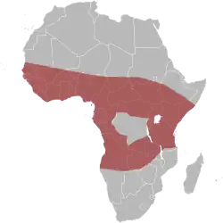 Die Afrikanische Speikobra ist in großen Teilen des tropischen Afrikas südlich der Sahara vom Senegal bis Somalia und nach Südosten bis Angola verbreitet.[2] Die Nominatform lebt dabei im gesamten Verbreitungsgebiet unter anderem in Ostafrika in Tansania, Kenia, Uganda, Burundi und Ruanda sowie im südwestlichen Afrika in Namibia, Angola und Südafrika. Die Unterart Naja nigricollis woodi kommt in Zentral- und West-Namibia und in der Kapprovinz in Südafrika vor während Naja nigricolis nigricincta in Zentral- und Nord-Namibia und dem südlichen Angola anzutreffen ist.
