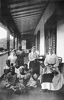 Ab den 1880er Jahren fanden niederländische und schottische Händler jedoch an der westafrikanischen Goldküste (Ghana), wo sie Handelsniederlassungen hatten, einen neuen Absatzmarkt.[2] Am Anlaufhafen Elmina bestand eine große Nachfrage nach den bunt gemusterten Stoffen. Der Bedarf entstand, so wird angenommen, durch die Belanda Hitam, die zwischen 1831 und 1872 für die Koninklijk Nederlandsch-Indisch Leger in Indonesien gedient hatten und bei ihrer Heimkehr Batiken aus Java an der Goldküste einführten.[8] Dieser Erfolg führte dazu, dass neben den in Westafrika entstehenden Waxprint-Fabriken auch schottische, britische und schweizerische Fabrikanten begannen, Waxprints für den westafrikanischen Markt zu produzieren, beispielsweise die Firma ABC in Manchester seit 1908.[5] Das Handelsmonopol für diese Stoffe hielten vom 19. Jahrhundert bis in die 1990er Jahre togolesische Textilhändlerinnen, Nana-Benz genannt.[5]