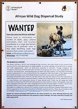 - ↑ Anne A. Carlson, Ron Carlson, Fred B. Bercovitch: African Wild Dog Conservation Project, Kafue National Park, Zambia 2004 Annual Report. Conservation and Research for Endangered Species Zoological Society of San Diego, 2005.