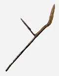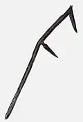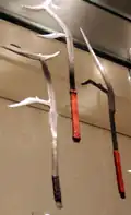 Die Wurfeisen waren zudem eine wirksame Nahkampfwaffe. Die Sporne konnten als Parierelemente dienen und erlaubten auch ein Verklemmen der gegnerischen Waffe, um ihm diese zu entreißen.[31][32] Manche Exemplare, z. B. der Gbaya, waren gar nicht dafür ausgelegt, geworfen zu werden.[33]