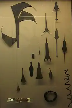 Zudem wurden einige Wurfeisen als Stammessymbol benutzt. Sie eignen sich gut dazu, da sie eine große Formenvielfalt ermöglichen und lokale Schmiede eine besondere Form wählen konnten, welche dann vielfach kopiert wurde.[45]