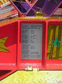 Fahrpult des Afterburner „FREE-STYLE“ (Baujahr 1999) des Münchner Schaustellerbetriebs Johann & Margherete Agtsch (bis 2021; nach massiver Umgestaltung heute als „Mexican Flight“ unter dem Münchener Schausteller Franz-Xaver Kollmann auf der Reise). Dieses Modell kann den Gondelkranz lediglich gegen den Uhrzeigersinn drehen und verfügt über eine manuelle Steuerung. Im Bild ist das durch den Betreiber umgebaute (Potentiometer für die Gondeldrehgeschwindigkeit versetzte) Fahrpult zu sehen.