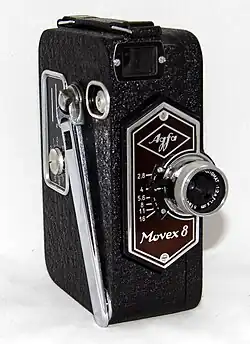 Als erster 8-mm-Apparat von Agfa erschien 1937 die Movex 8 für 145 RM. Sie wog 750 g und arbeitete nur mit der Standardgeschwindigkeit 16 Bilder/s, wie damals üblich von einem Federwerkmotor angetrieben. Bei ihrem Agfa Kine-Anastigmat f/2,8 mit 12 mm Brennweite handelte es sich um ein Fixfokus-Objektiv mit einem Arbeitsbereich von 2 m bis unendlich. Diese Kamera benutzte die Agfa-Movex-Filmkassette, ein benutzerfreundliches System mit 10 m Filmvorrat, bei dem Ab- und Aufwickelspule nebeneinander lagen – ähnlich dem späteren Single-8-System. Diese Filmkassette gab es fertig konfektioniert zu kaufen.
