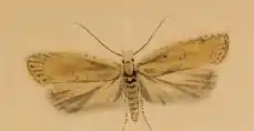 Die Falter erreichen eine Flügelspannweite von 15 bis 21 Millimetern.[1] Sie besitzen eine ockerfarbene Grundfärbung und eine dunkelbraune bis schwarze Zeichnung. Die Flügel werden in Ruhestellung flach und überlappend zusammengelegt. Die Falter sind schwierig von verwandten Arten zu unterscheiden.