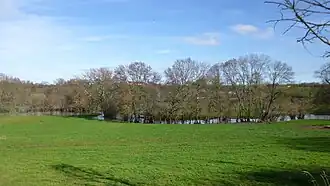 Zusammenfluss von Branlin (im Vordergrund) und Agréau (im Hintergrund) bei Hochwasser | ||