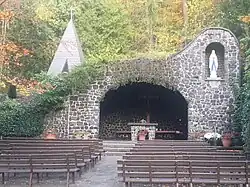 Oberhalb der Kirche wurde, auf Anregung des Seelsorgers von Ahl (1976–1988), Pater Ludwig Böhm ofm, im Jahre 1985/86 im Wald eine Mariengrotte errichtet. Mit ihrem landschaftlichen Charme und der Ausstattung mit vielen Sitzplätzen ist sie für die Ausrichtung von Gottesdiensten unter freiem Himmel gut geeignet[11]. Die Grotte liegt am Beginn des Pilgerweges von Ahl zur Wallfahrtskirche Heilig Kreuz in Alsberg.