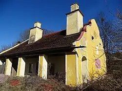Das spätbarocke Gebäude der im 18. Jahrhundert errichteten ehemaligen Lackenschmiede steht heute unter Denkmalschutz und fällt vor allem durch seine gesichtsartig gestaltete Fassade auf.[5]