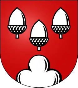 Die Blasonierung des Gemeindewappens von Aichelberg lautet: In Rot über silbernem Dreiberg drei (2:1) steigende silberne Eicheln.