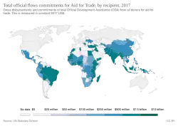Die Vereinten Nationen schätzten, dass 2017 der Wert der Aid-for-Trade-Maßnahmen 43 Milliarden USD überschritten hat, insgesamt seien von 2006 bis 2017 so 409 Milliarden USD investiert worden.[3] 2020 seien knapp 50 Milliarden verteilt worden, von denen fast die Hälfte an Projekte gegangen seien, die entweder die Gleichberechtigung von Frauen oder den Umweltschutz zum Thema hatten.[4]