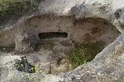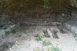 Bisher wurden 22 Kammergräber, ein Schachtgrab und ein nur aus einem Dromos bestehendes Grab entdeckt. Die Gräber wurden in den anstehenden Fels geschlagen. Da das Gelände nach Süden abfällt verlaufen die Dromoi in etwa von Süd nach Nord. Die meisten Kammergräber hatten eine rechteckige Grabkammer mit Giebeldecke. Man stellte gelegentlich auch einen Firstbalken dar, so dass man davon ausgeht, dass hier ein Giebeldach eines Hauses imitiert wurde. Die Gräber wurden über längere Zeit verwendet, wobei die Knochen zusammen mit den Grabbeigaben älterer Beisetzungen einfach zur Seite geschoben oder in Grabschächte verbracht wurden. Die Grabschächte wurden meist mit Steinplatten verschlossen. In manchen Kammern gab es in den Fels gehauenen Bänke, auf denen Grabbeigaben abgestellt wurden. Zum Teil gab es auch Nischen, die für Beisetzungen genutzt wurden. Sie wurden genauso wie die Eingänge mit unbehauenen Steinen zugemauert.