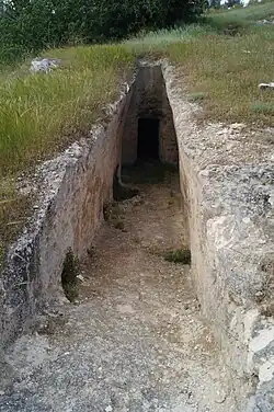 Zunächst erreicht man Grab 13. Es besteht nur aus einem etwa 8 m langen Dromos mit Scheintür.