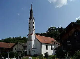 - Filialkirche St. Petrus und Paulus. Sie wurde Anfang des 18. Jahrhunderts erbaut, die Einrichtung ist frührokoko um 1720 bis 1730. Der Spitzhelm stammt aus dem 19. Jahrhundert.