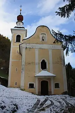• Die Maria-Kapelle in Oberalkus wurde kurz darauf in den 1860er Jahren errichtet oder erneuert. Sie beherbergt einen Altar aus der zweiten Hälfte des 17. Jahrhunderts.
