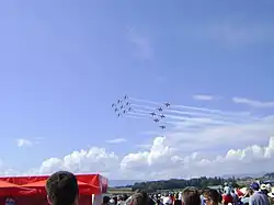 Die Schweizer Luftwaffe beteiligte sich bei diversen militärischen und zivilen Veranstaltungen mit Vorführungen. Bei vom Militär organisierten Events waren in der Regel keine ausländischen Militärflugzeuge eingeladen. Grund war die strikte Schweizer Neutralität. Zivile Flugshow-Organisatoren hingegen brachten auch ausländische Militärflugzeuge in ihr Programm ein, wie mehrfach die Harrier bei den ab 1976 stattfindenden Flugtagen in Bex. Mit dem Ende des Kalten Krieges ergingen auch Einladungen der Schweizer Luftwaffe an Staaten des ehemaligen Ostblocks. An der Air94 am 26. und 27. August 1994 war eine Su-22 der slowakischen Luftwaffe auf dem Flugplatz Buochs zu Gast, wo die Patrouille Suisse ihr 30-jähriges Bestehen auf dem Hawker Hunter feierte. Höhepunkt sowie Anlass der Veranstaltung war die Verabschiedung des Hunters mit einem Formationsüberflug von 40 Hawker-Hunter-Maschinen.[1] Es wurde beschlossen, alle zehn Jahre eine solche Airshow durchzuführen. Die nächste Airshow fand daher als Air04 am 4. und 5. September 2004[2] auf dem Militärflugplatz Payerne statt. Rund 275'000 Menschen verfolgten das militärische Spektakel mit 186 Flugzeugen, dessen Höhepunkt ein ungewöhnlicher gemeinsamer Überflug von fünf Kunstflugstaffeln war.[3] Der Direktor der Air04 war Ian Logan.