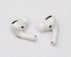 Die AirPods Pro sind kabellose Bluetooth-Kopfhörer mit aktiver Geräuschunterdrückung des US-amerikanischen Unternehmens Apple.[1] Sie stellen die High-End-Variante der AirPods dar und wurden am 28. Oktober 2019 angekündigt und am 30. Oktober 2019 zu einer unverbindlichen Preisempfehlung (UVP) von 279,00 Euro[2] auf den Markt gebracht.[3] Als System-on-a-Chip (SoC) kommt Apples hauseigener Apple H1 zum Einsatz.