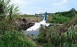 - ↑ Lagune statt Landebahn: Passagierflugzeug landet im Wasser Die Zeit vom 28. September 2018