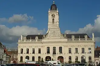 - der 45 Meter hohe Belfried aus der gleichen Zeit wie das Hôtel de Ville, der, aufgrund seiner Beschädigung durch ein Feuer, nach dem Ersten Weltkrieg wieder aufgebaut und im Jahr 2005 als Teil der „Belfriede von Belgien und Frankreich“ in die Liste des UNESCO-Welterbes aufgenommen wurde