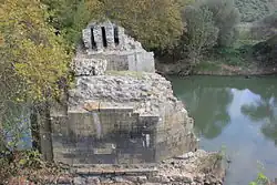 Von den vier Hauptbögen über den Fluss fand Hasluck keinen mehr stehend vor, aber beide Uferrampen sowie fast alle Brückenpfeiler hatten sich vollständig erhalten, einzig der vom Westufer aus dritte, in der Flussmitte gelegene Pfeiler war gänzlich verschwunden.[7] Der offengelegte Brückenkörper weist im oberen Pfeilerbereich vier parallel angeordnete, schlitzartige Hohlräume auf, die sich unterhalb der Fahrbahnoberfläche längs durch die Brücke ziehen und eine Reduktion der auf den Gewölbebögen ruhenden toten Last bewirken sollten.[8] Die Pfeiler sind auf beiden Seiten durch große Wellenbrecher mit spitz zulaufenden Aufsätzen geschützt.[8]