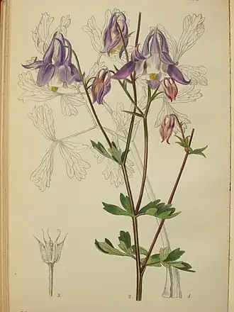 - ↑ Tafel (Lithographie) und Text von Aquilegia alpina in Curtis's Botanical Magazine.