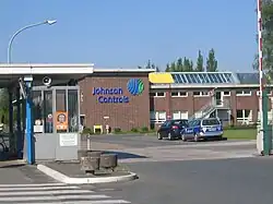 Haupteingang des ehemaligen Johnson-Controls-Werkes in Hannover-Marienwerder, ehemals VARTA