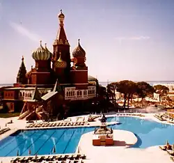 Am nördlichen Stadtrand von Aksu liegen die Ruinen der antiken Stadt Perge. Ungewöhnliche moderne Wahrzeichen stellen die Hotelkomplexe dar, die Teile des Moskauer Kremls, des Markusplatzes in Venedig und des Topkapı-Palasts imitieren.