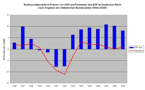 Preisbereinigtes Bruttosozialprodukt und Preisindex, 1926 bis 1939, Veränderungen zum Vorjahr[16]