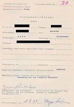 Nach der Aktion Gitter, die unmittelbar nach der Ausrufung des Protektorats stattfand und zur Verhaftung von bis zu 6400 Personen führte, hat die Gestapo bereits seit Sommer 1939 die Aktion Albrecht I. vorbereitet, die mit dem Beginn des Zweiten Weltkriegs durchgeführt wurde. Sie richtete sich gegen Personen, die in der ersten Aktion nicht verhaftet wurden: gegen Sozialdemokraten und Kommunisten, antifaschistische und linksorientierte Intellektuelle, deutsche Emigranten, Juden und Offiziere der tschechoslowakischen Armee, die präventiv verhaftet wurden, damit sie nicht den organisierten tschechischen Widerstand stärken.