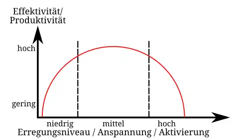 Wird der Leistungsverlauf in Abhängigkeit vom Erregungsniveau in ein Koordinatensystem eingetragen, so ergibt sich eine umgekehrte U-Kurve. Dieses Modell geht auf Experimente an Labormäusen zurück.[1] Aufgrund zahlreicher ähnlicher Befunde bei verschiedenen Spezies wird ein gesetzmäßiger Zusammenhang angenommen.[2]