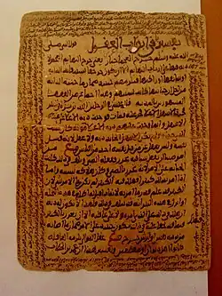 - Ibn al-Qāsim al-ʿUtaqī (gest. 806), wohl der bekannteste Schüler Māliks, gilt als erster Verbreiter des Muwaṭṭaʾ in Ägypten. Alte Fragmente seiner Rezension sind in Qairawān erhalten, aber bisher nicht publiziert worden.[11] Seine Rezension hat der Qairawāner Gelehrte Sahnūn ibn Saʿīd in seinem Schülerkreis in seiner Heimatstadt vorgestellt; es ist bis in das späte 10. Jahrhundert in Nordafrika schriftlich, in neu angefertigten Abschriften überliefert worden.[12]