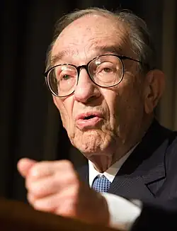 Alan Greenspan (* 6. März 1926 in New York) ist ein US-amerikanischer Wirtschaftswissenschaftler. Er war vom 11. August 1987 bis zum 31. Januar 2006 Vorsitzender der US-Notenbank (Federal Reserve System).