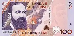 | 100 Lek | violett | Partisan | Adler, Berge | 1994 | 31. Dezember 2010 | lila | Fan Noli | Parlament | 1997 | 31. Dezember 2010 | heute als Münze | ||||||||