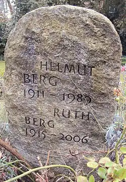 Nachdem Helmut Berg im September 1930 die Matura in Trogen absolviert hatte, begann er in Fribourg Medizin zu studieren. Er erkannte jedoch bald, dass dies, trotz der Prägung durch seinen Vater, nicht sein Weg war und brach das Studium nach einem Semester ab. Parallel dazu verfolgte er weiterhin seine Passion zur Segelfliegerei. Als jedoch im August 1932 Bergs Flugkamerad Hans Reutemann mit dem «Berggeist» den tödlichen Flugunfall erlitt, zog er einen Schlussstrich unter seine Segelflugkarriere.[48] Er ging an die Universität Zürich und schrieb sich 1933 für Naturwissenschaft ein, wechselte jedoch vor dem Abschluss an die ETH Zürich, wo er vier Semester Physik studierte, um sich 1937 erneut an der Uni Zürich als Student der Nationalökonomie einzuschreiben. 1939 lernte Berg in Zürich an der Landi 39 Ruth Cerf kennen; bereits zwei Jahre später heirateten die beiden. Während des Zweiten Weltkrieges diente Berg im Aktivdienst als Korporal bei den Bodentruppen der «Flieger-Kompanie 18». Ab 1941 arbeitete er in Bern für die Eidgenössische Zentralstelle für Arbeitsbeschaffung, welche etlichen Menschen in den krisenhaften Kriegsjahren zu einem menschenwürdigen Auskommen verhalf. 1945 promovierte Helmut Berg schliesslich mit der Dissertation «Die Zahl der im schweizerischen Gewerbe beschäftigen Personen, ihre Verteilung und Entwicklung in verschiedenen Gemeindegrössen». Ab 1947 leitete er in Bern die Städtische Zentralstelle für Arbeitsbeschaffung und Wohnungsfürsorge. Ende der 1950er-Jahre wurde der Migros-Gründer Gottlieb Duttweiler auf den sozial engagierten Helmut Berg aufmerksam und bot ihm die Leitung der Migros-Pensionskasse an. Aus diesem Grund zog die Familie mit ihren mittlerweile drei Kindern 1959 nach Uitikon im Kanton Zürich. Bis 1967 war Berg daraufhin für Duttweiler, mit dessen Prinzipien er sich stets identifizierte, tätig. Danach arbeitete er bis zur Pensionierung als selbstständiger Berater. Am 25. November 1989 starb Helmut Berg im Alter von 78 Jahren in Uitikon und wurde in der Kirche Uitikon-Waldegg beigesetzt.[49] Seine Frau Ruth starb im Jahre 2006.[50]