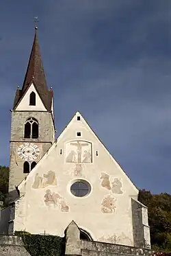 Albeins hat zwei Ortskirchen, eine nördlich und eine südlich der Sade. Die Pfarrkirche ist dem Hl. Hermagoras und St. Fortunat geweiht. Erstmals wurde die Pfarrkirche 1214 erwähnt, die aber älteren Ursprungs ist. Noch vor der Mitte des 12. Jahrhunderts wurde aus dem umfassenden Albeinser Pfarrsprengel die Pfarre Lajen ausgegliedert.[5] Die älteste Kirche in Albeins ist allerdings die Margarethenkirche, deren Anfänge noch vor dem Jahr 1000 liegen. Im Jahr 1455 wurde die parrochia Albeins vom Brixener Bischof Nikolaus von Kues visitiert, der daraufhin aufgrund der von ihm festgestellten Missstände umfassende Anordnungen zur Reform des kirchlichen Lebens, darunter insbesondere Vorschriften zur Verwaltung und Rechnungslegung der Pfarrei, zu Feiertagen und zur Spendung der Sakramente erließ.[6]