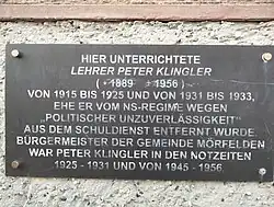 Peter Klingler (1889–1956) war Lehrer an der Albert-Schweitzer-Schule von 1915 bis 1925 und Bürgermeister der Gemeinde Mörfelden von 1925 bis 1931, ab 1931 war er nochmals kurzzeitig Lehrer. In der Nachkriegszeit war er erneut Bürgermeister von Mörfelden. Er ist Namensgeber der zweiten Grundschule im Stadtteil.[3]