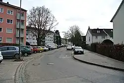 Der städtebauliche Entwurf folgte dem Leitbild der durchgrünten und aufgelockerten Stadt. Die fächerförmig angeordneten, leicht versetzten, viergeschossigen Zeilenbauten sind von großzügigen Grünflächen umgeben. Sie bilden den Rand der Siedlung und deren Grünflächen den Übergang zu den angrenzenden Freiflächen. Die zweigeschossigen Einfamilien-Reihenhäuser liegen im Innern der Siedlung und vermitteln zur bestehenden älteren Bebauung mit Doppelhäusern. Ein Hochhaus mit dreizehn Geschossen wurde als städtebaulicher Akzent am östlichen Rand der Siedlung errichtet.