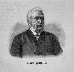 Albert Bürklin war ein wohlhabender Großgrundbesitzer und Vater des späteren Landtags- und Reichstagsabgeordneten sowie Karlsruher Theaterintendanten Geheimrat Albert Bürklin. Bürklin war bis 1858 als Eisenbahninspekteur im Staatsdienst tätig. Daran anschließend wurde er zum Leiter des Eisenbahnamts der Stadt Karlsruhe berufen. Bürklin plante die Trasse der Maxaubahn, die unter seiner Ägide von 1860 bis 1862 gebaut wurde. Er war neben dem Verleger und Buchhändler Moritz Schauenburg maßgeblich an der Gründung des am 25. Mai 1885 in Lahr als „Deutsches Reichswaisenhaus“ eröffneten ersten deutschen Volkswaisenhauses beteiligt, in dem Kinder aus allen Teilen Deutschlands und des Auslandes ungeachtet ihrer Konfessionen aufgenommen wurden.