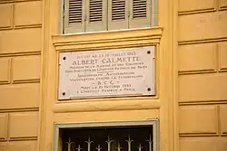 Calmette ging in die Geschichte der Medizin hauptsächlich wegen seines Kampfes gegen die Tuberkulose ein. Er erarbeitete mit Camille Guérin nicht nur einen wirksamen Impfstoff, sondern auch ein Impfprogramm gegen die zur damaligen Zeit für die massenhaft betroffenen Menschen tödliche Krankheit (1920/1921 führte er die ersten BCG-Schutzimpfungen gegen Tuberkulose an gefährdeten Säuglingen durch. Hierzu verwendete er den von ihm entwickelten Impfstoff.[3]).