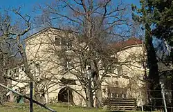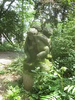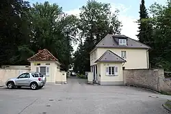 - ↑ Die Umfassungsmauer des Parks ist (ganz oder teilweise?) erhalten, der Landsitz ist abgegangen.