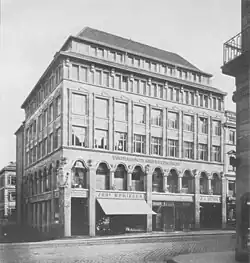 - ↑ a b #Adressbücher 1913–1914; #Bauhütte 1913, S. 596, 601; #Bauzeitung 1914, S. 165; #Häuselmann 1916, S. 125–126; #Neudeutsche 1914, S. 499, 504; #Rundschau 1913, Heft 8, S. IX–X, Tafel 126. – Emil und Albert Eitel verkauften das Haus 1918 an den Allgemeinen Deutschen Versicherungsverein a. G. Albert Eitel behielt jedoch sein Büro in dem Hause bei.