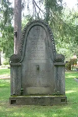 - ↑ Grabinschrift des Familiengrabs von Albert Eitel (siehe Abbildung); #Adressbücher 1936–1041; #Kunst 1939 S. 159, 160.