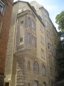 Ehemalige Villa des Freiherrn von Tessin.[35] Bauherr: Julie von Siegle. Architekten: Albert Eitel, Eugen Steigleder. #Klopfer 1910, S. 150, 155, 162–167. |