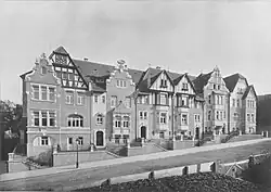 Sechs Einfamilienhäuser, Römerstraße 77–87, Baujahr 1901–1902. In Nr. 83 (viertes Haus von links) wohnten die Eitels 1902–1909. -
