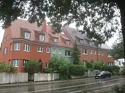 Arbeitersiedlung für die Kammgarnspinnerei Merkel & Kienlin.[29] Bauherr: Johannes Merkel und Ludwig Kienlin. #Zimdars 1993, S. 215. |