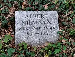 Albert Niemann starb 1917, zwei Tage vor seinem 86. Geburtstag, in Berlin und wurde, wie seine Gattin Hedwig zwölf Jahre zuvor, auf dem Alten St.-Matthäus-Kirchhof in Schöneberg beigesetzt. Im Zuge der von den Nationalsozialisten 1938/1939 durchgeführten Einebnungen auf dem Friedhof wurden die sterblichen Überreste beider auf den Südwestkirchhof Stahnsdorf bei Berlin umgebettet.[3]