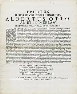 - Ephorus Illustris Collegii Tubingensis, Albertus Otto, Ab Et In Merlaw, Lectoribus Salutem Ac Perennitatem.